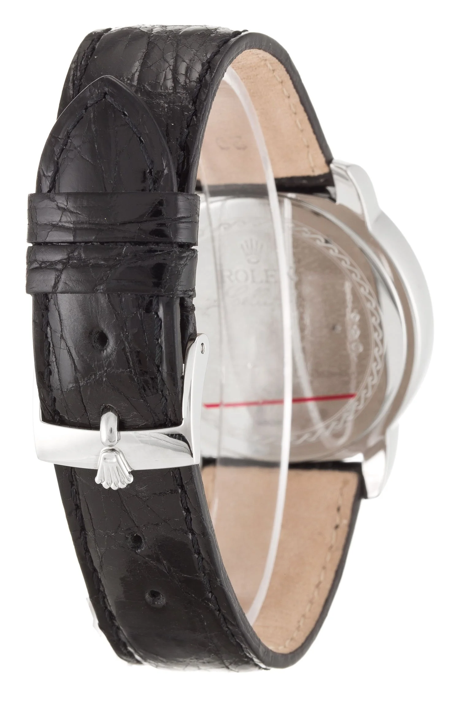 Brand Rolex Model Cellini Reference 5241 Gender Men’s watch Movement Manual Case Diameter 40 mm Case Material Platinum Plated Band Material Crocodile Black Dial Color Blue Quality Japanese (Miyota) Glass Sapphire crystal Water Resistance Waterproof up to 30 meters.